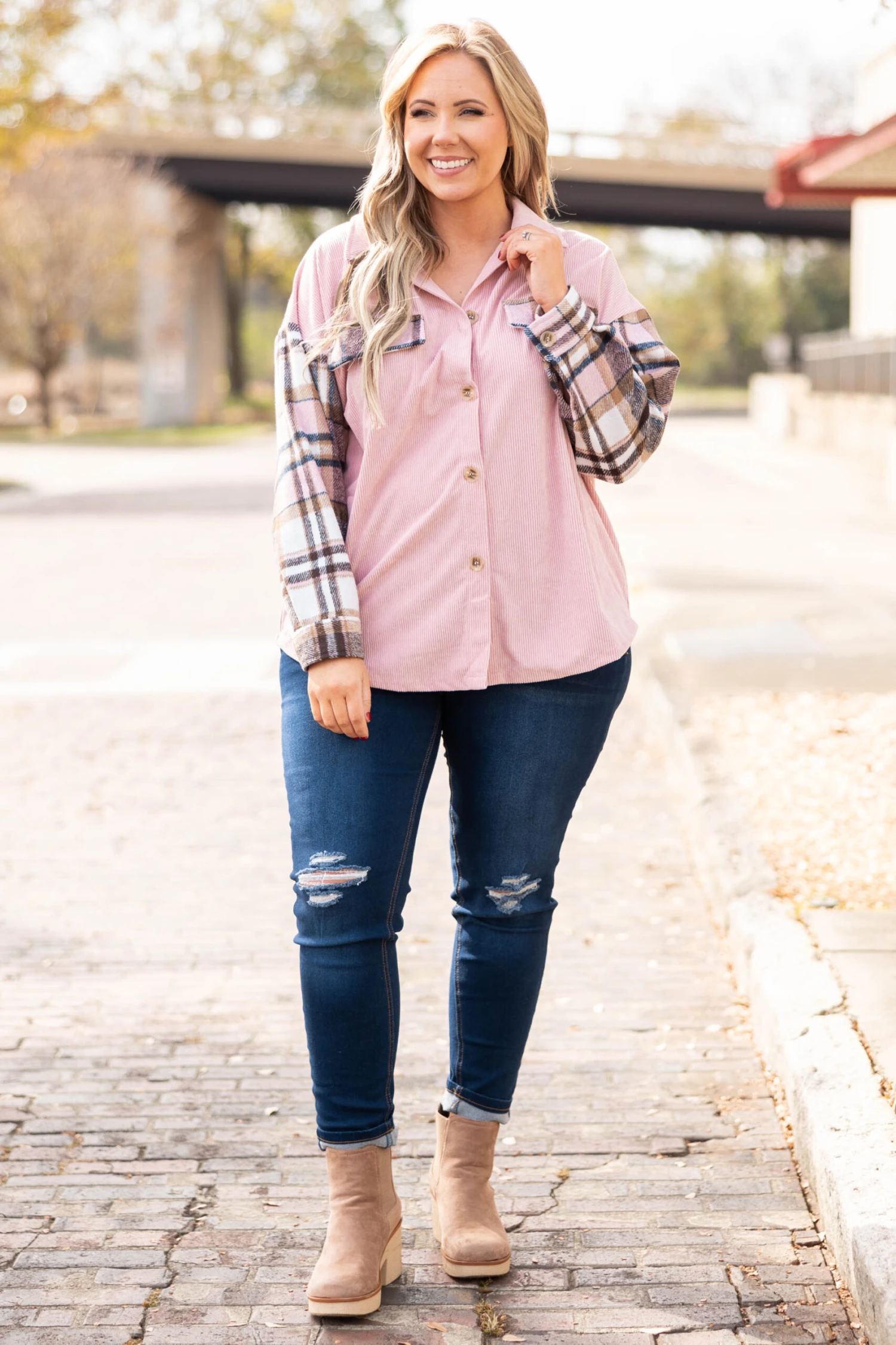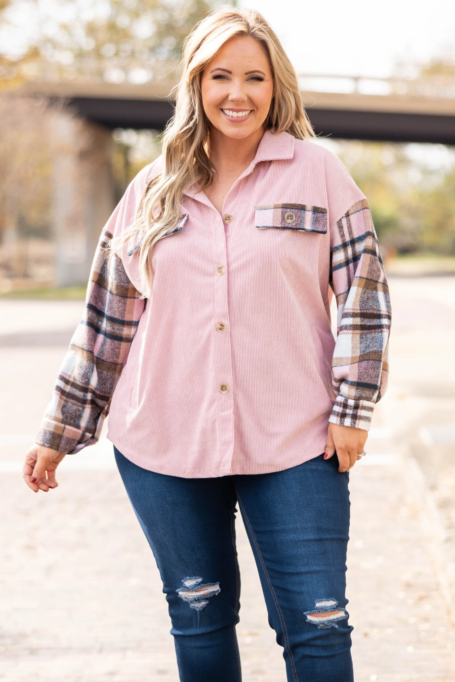 We see you looking, you may as well grab this beauty while you have the chance! This shacket has a gorgeous pink color with plaid accents that are just in time for the season! Style this over some skinnies as a cute top or layer it over a solid top and jeggings for a casual chic look!