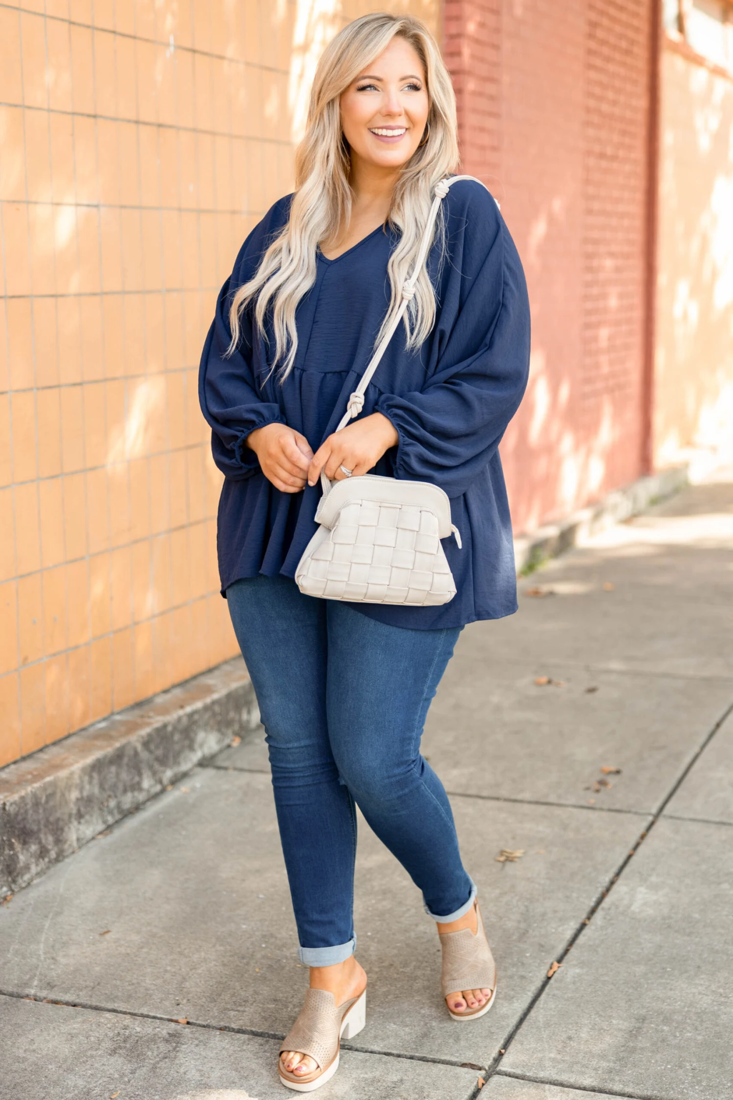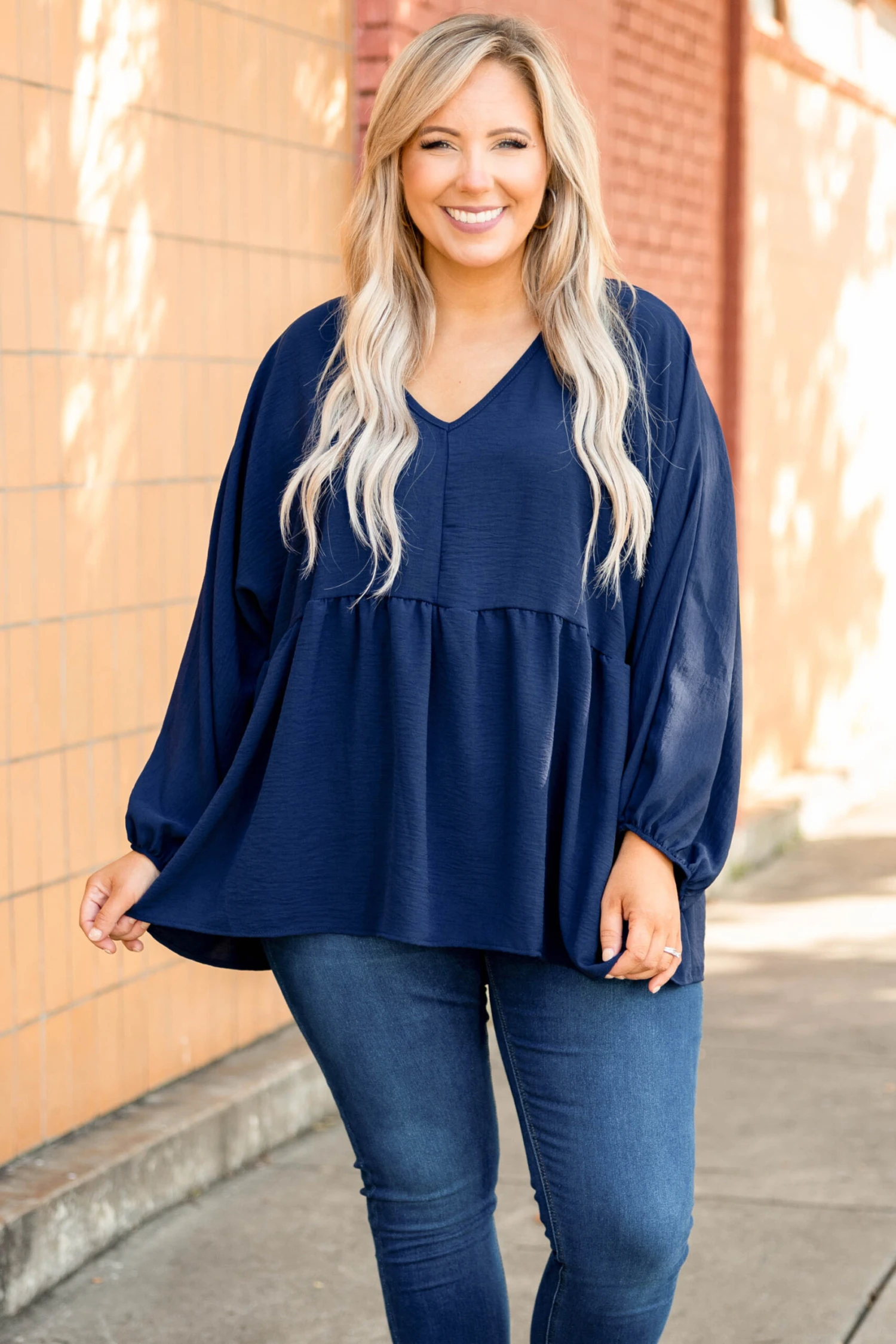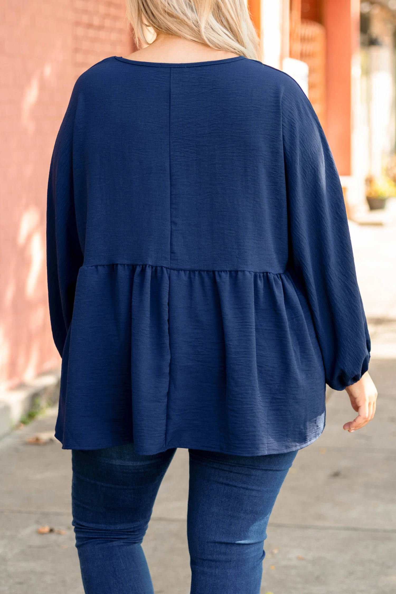 You’ll be exactly who you are supposed to be in this chic top!  It has a solid navy color with a fun and flirty baby doll fit to flatter your figure! It’s comfortable for all-day wear, is easy to style with your favorite shoes and accessories, and is just what your wardrobe needs for the season! Pair this top with skinnies or leggings for an effortlessly chic look!