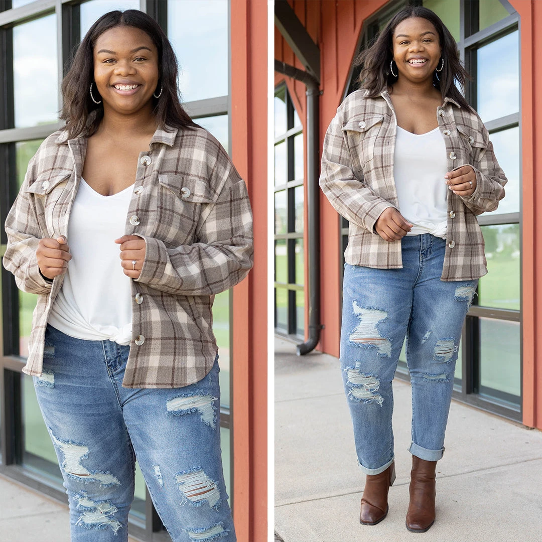Grab this coat and throw it on with all your faves this season! This coat has a lovely neutral color and a trendy plaid design that is just in time for the season! This coat is super cozy and perfect for your new favorite layering piece! Style this coat with all your favorite outfits for a classic, chic look!