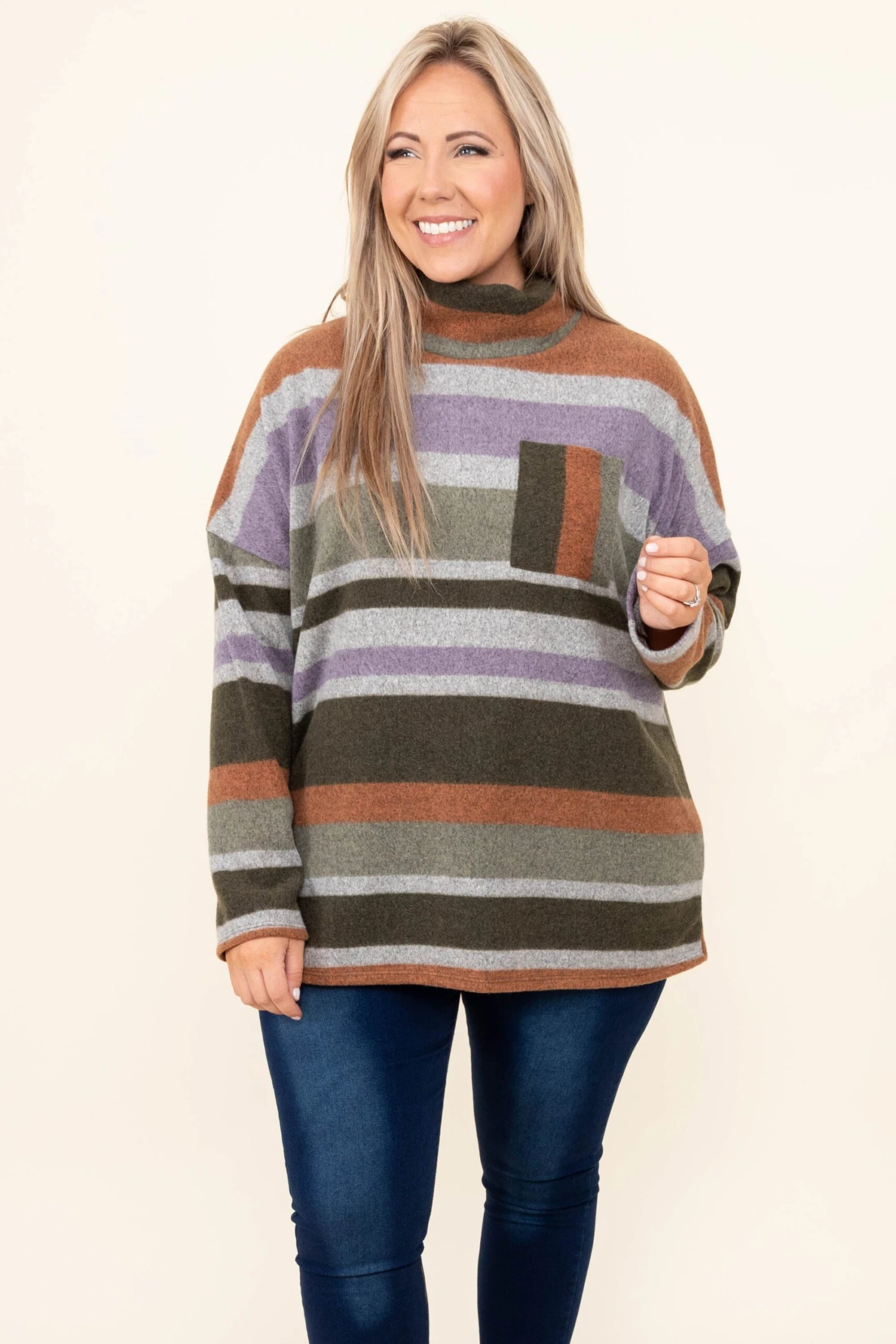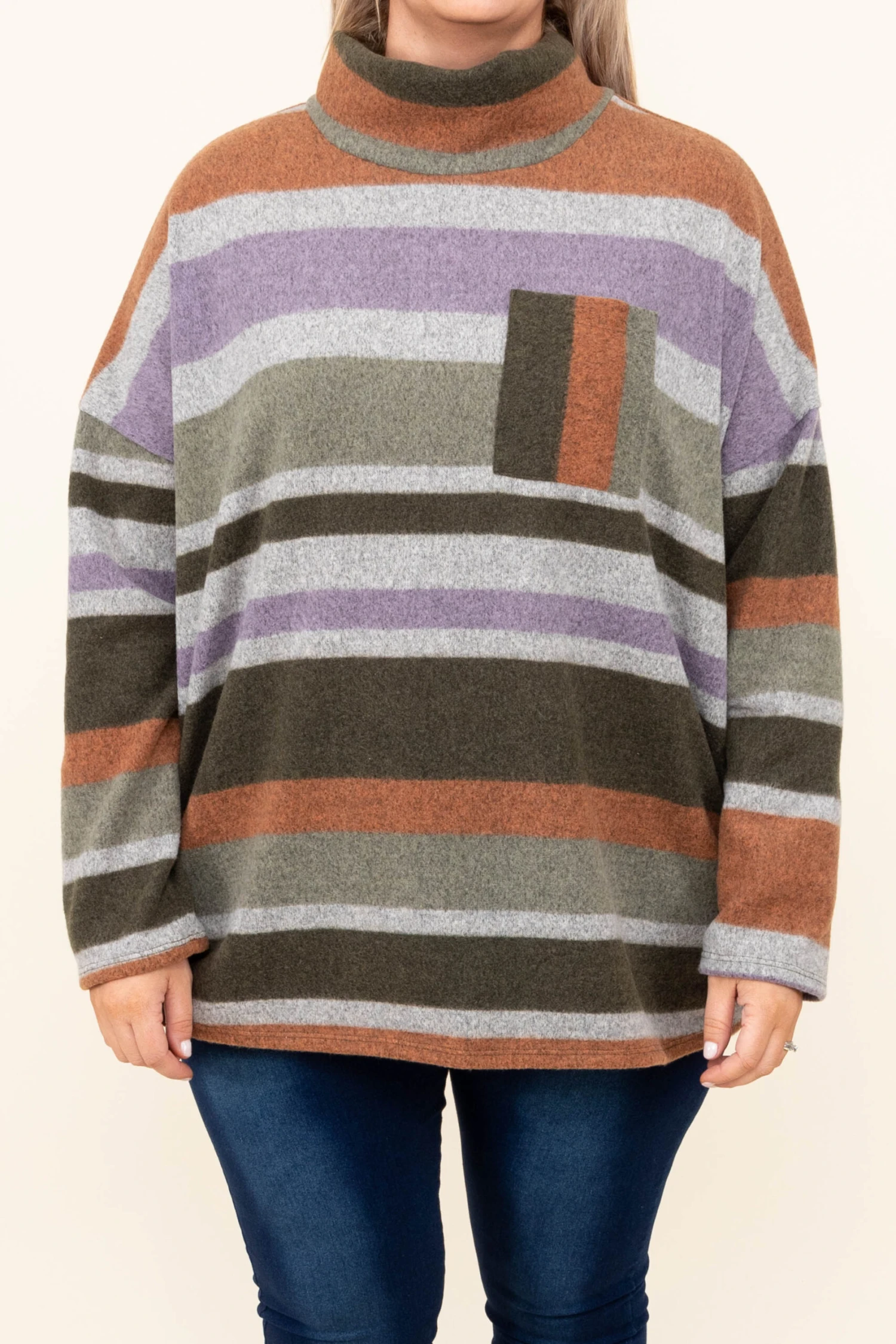 This is the top you should be chasing after! This classic top has multicolor stripes, a cozy turtleneck, and a flowy fit. Wear it casual with jeggings or skinnies or dress it up with a bold necklace!