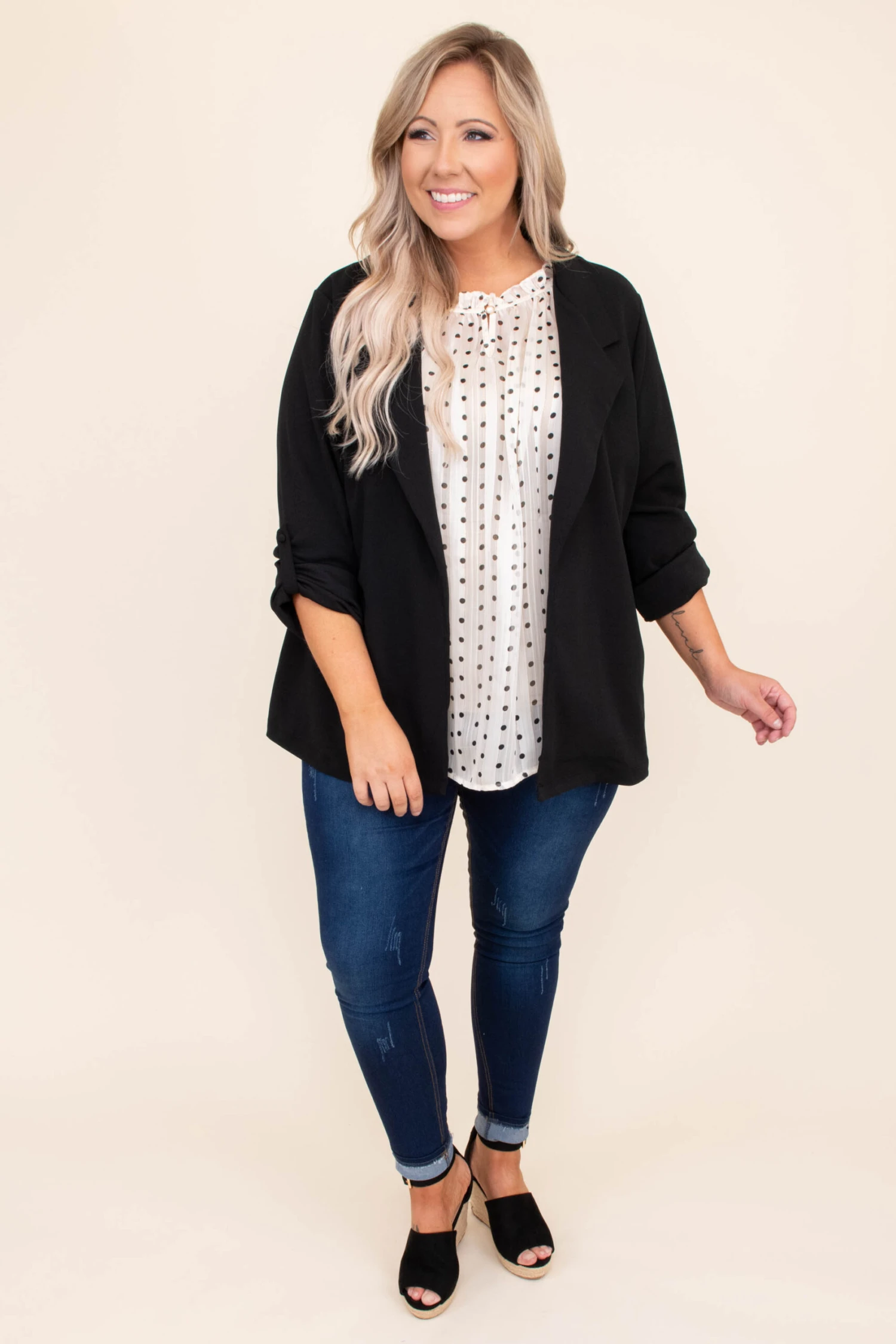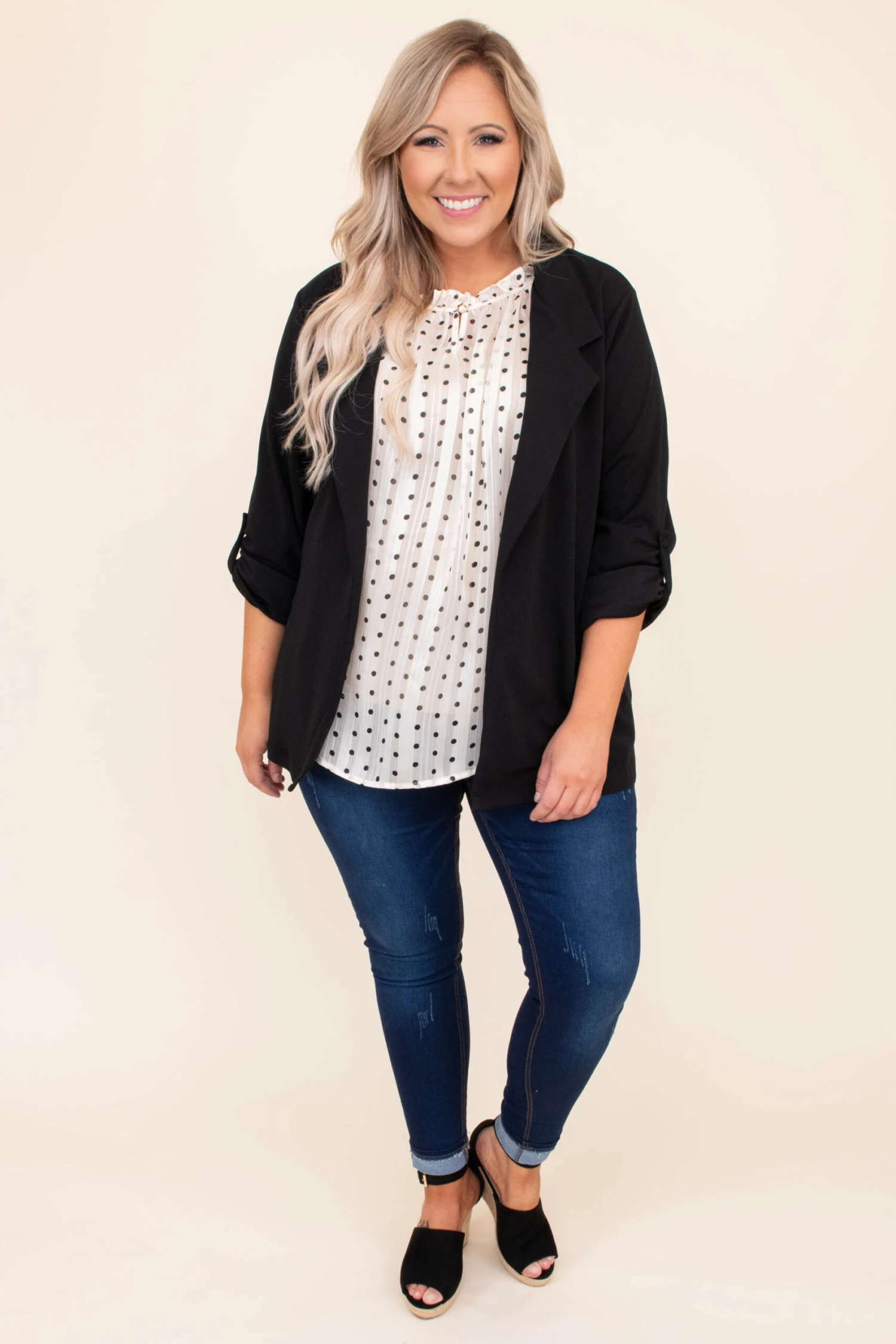 This jacket is timeless! It has a solid color that’s perfect for the season! It’s comfortable for all day wear, has an over sized fit, and can be styled with your favorite shoes and accessories! Simply, pair this jacket with a patterned top or dress for an effortlessly chic look!Â