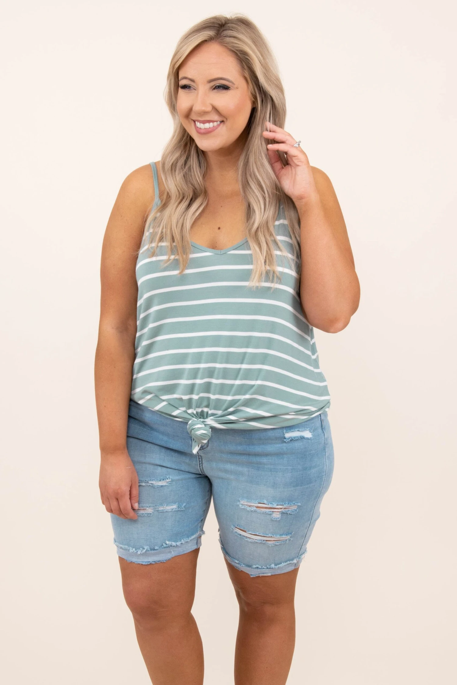 This top was made for a day at the beach! This tank has a simple stripe pattern with colors that are perfect for the season! It’s easy to style with your favorite shoes and accessories, has a flattering fit, and features a lightweight fabric you’ll want to wear all day long! Style this tank with shorts and sandals for your next vacation!