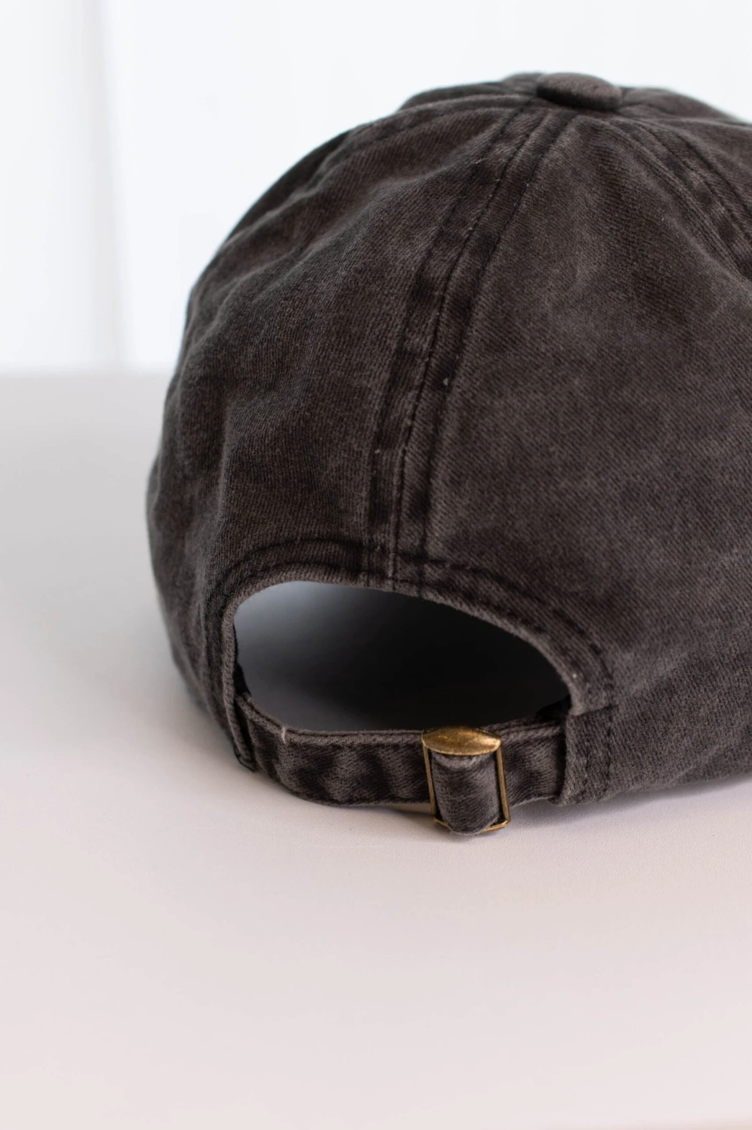 Top your look off with this amazing black hat! The cherry embroidery is so fun and the black color is neutral enough to pair with everything! Throw this on with some biker shorts and pullover for the perfect casual day look!