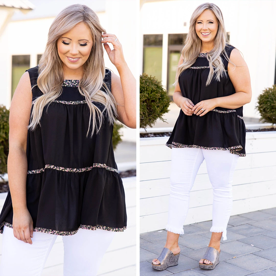 Bring in Spring with this tank! It has a solid color with floral detailing for the ultimate look! It’s comfortable for all-day wear, has a flowy fit, and features a classic style we adore! Pair this top with skinnies or shorts for an effortlessly chic look!Â