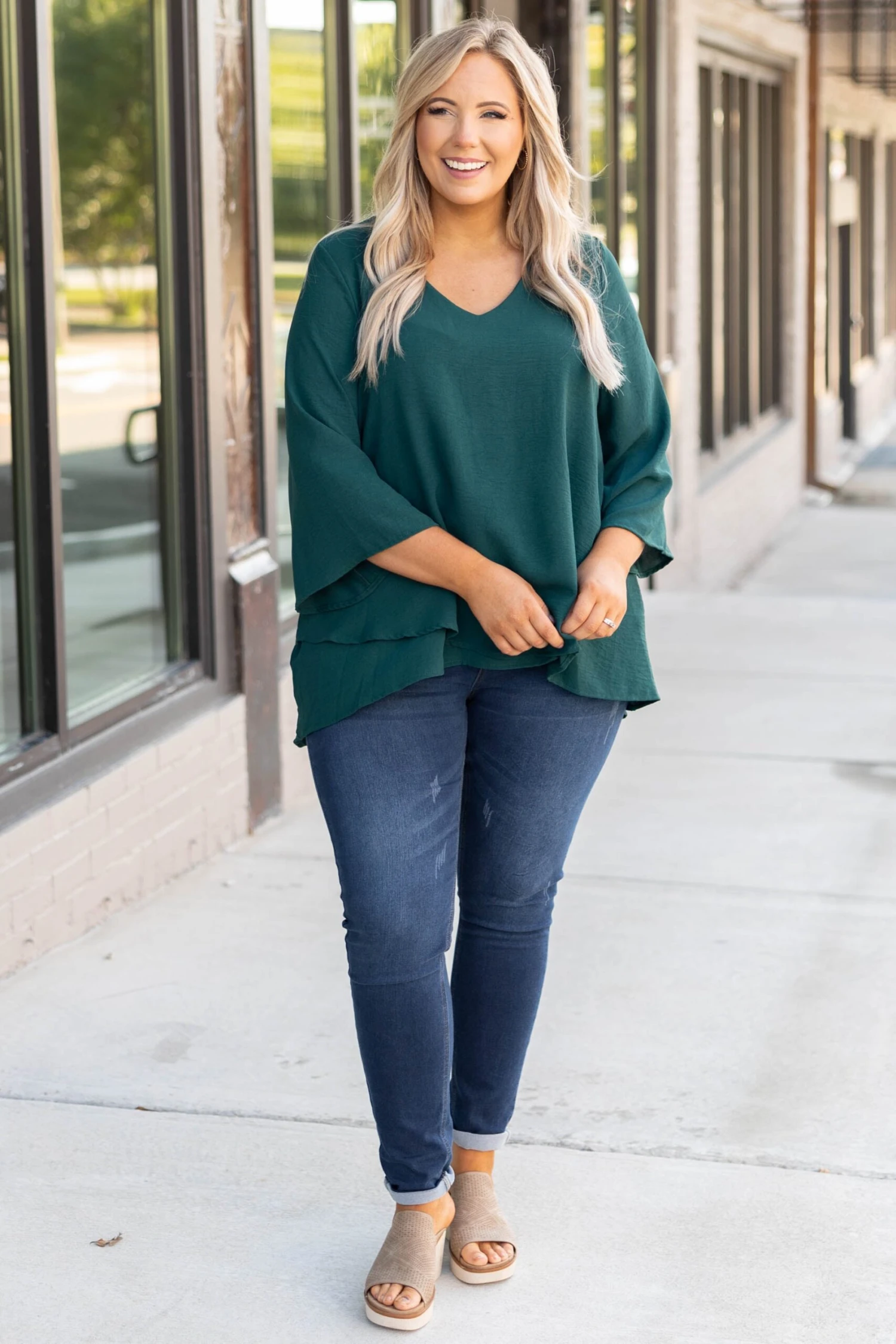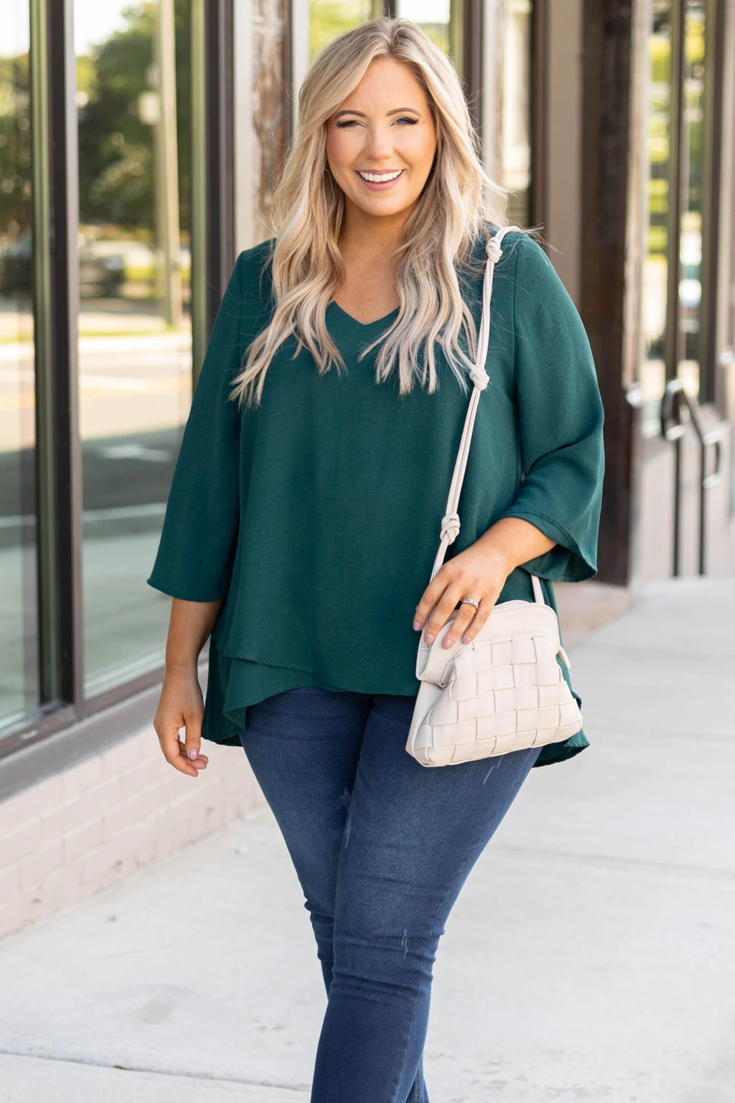 You’ll treasure this top forever! It has a solid neutral color you can dress up or down with ease! It’s comfortable for all-day wear, has a flowy fit, and features a classic v-neckline! Simply pair this top with skinnies and booties for an easy everyday look!Â