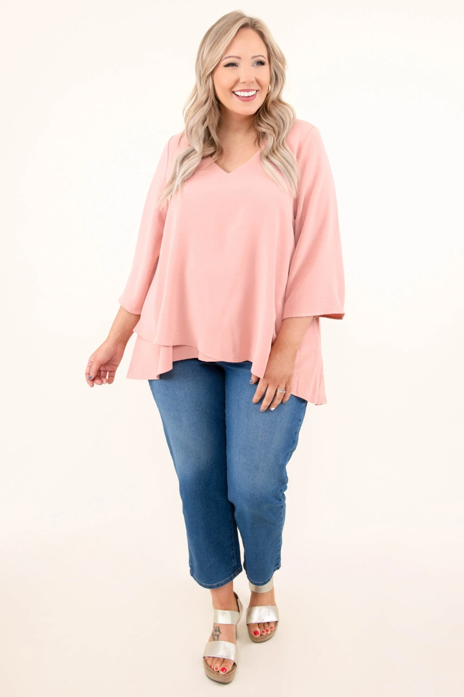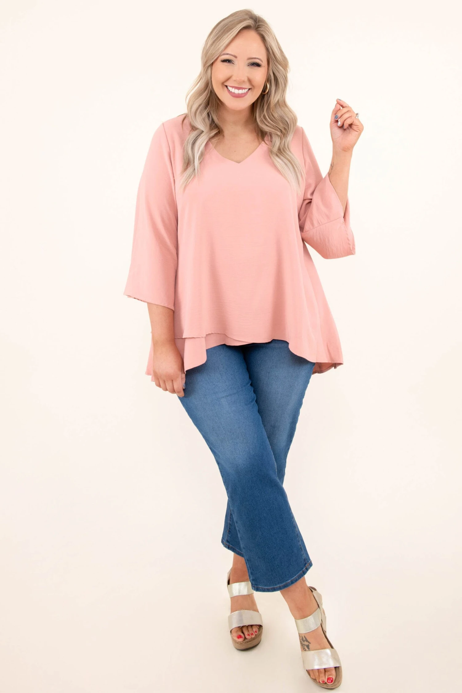 You’ll treasure this top forever! It has a solid mauve color you can dress up or down with ease! It’s comfortable for all-day wear, has a flowy fit, and features a classic v-neckline! Simply pair this top with skinnies and boots for an easy everyday look!