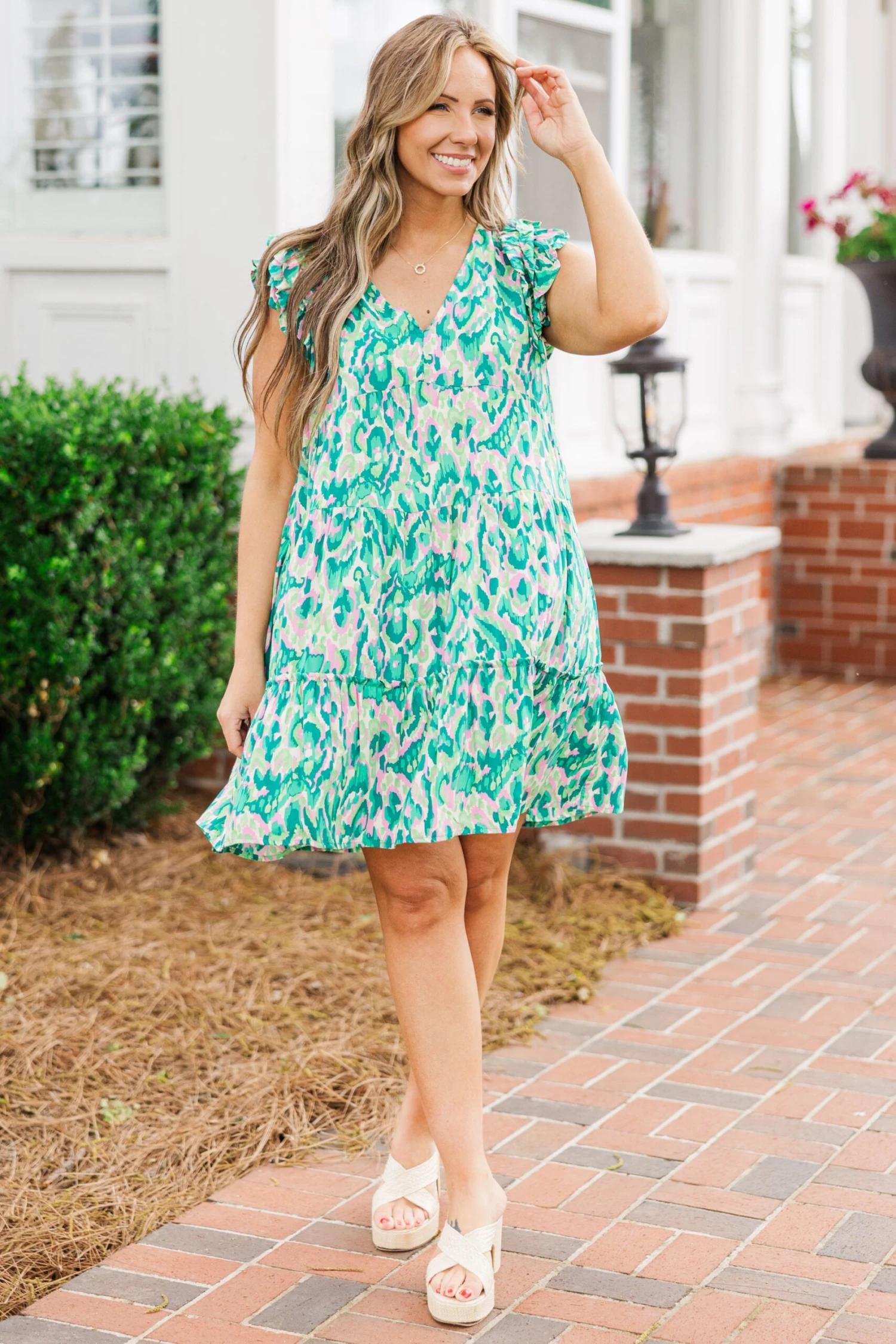 We are so in love with this FAB dress! The flutter sleeves and flowy fit create a flirty and lightweight look! The abstract design adds a touch of sophistication, making it the perfect dress for any occasion! Experience true happiness with this must-have addition to your wardrobe!