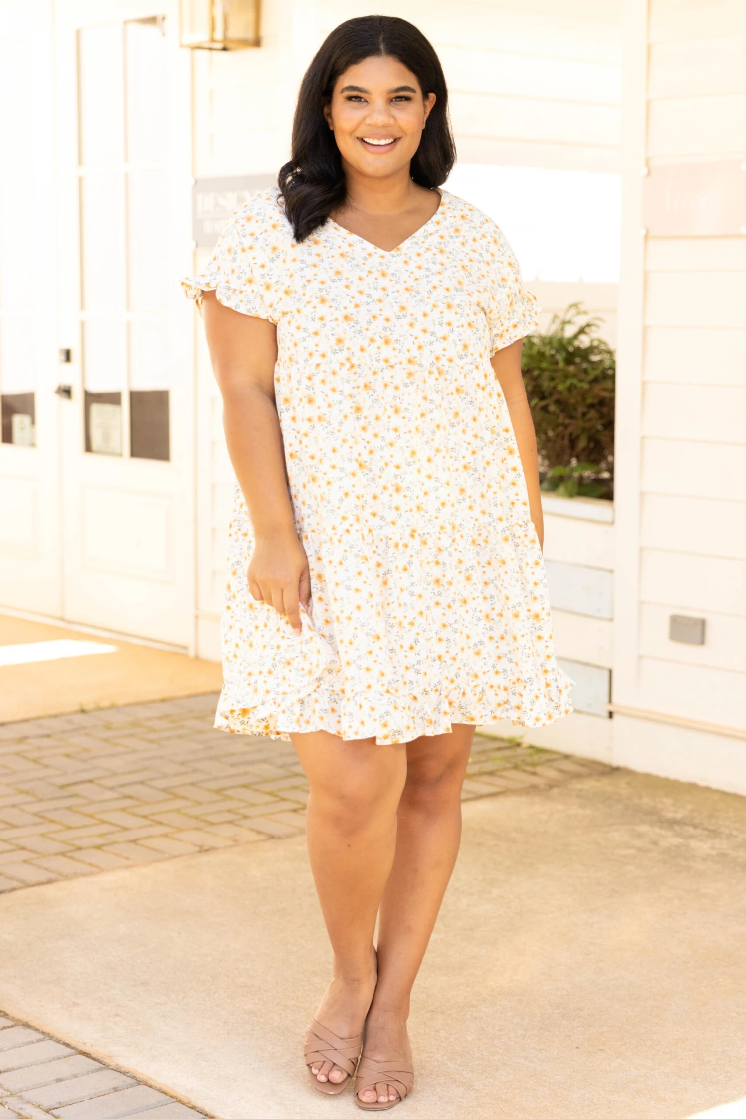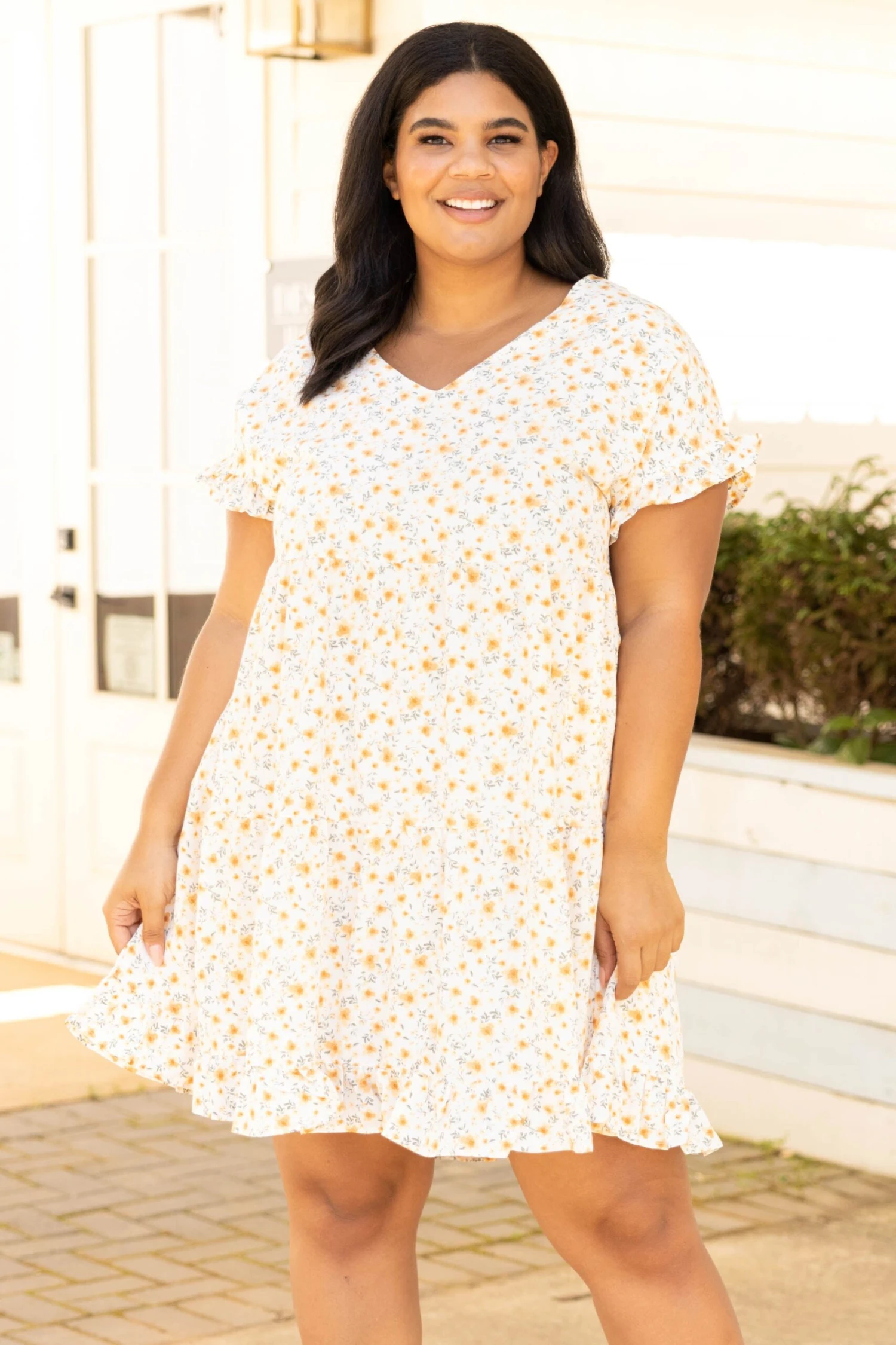 You will receive all the compliments when you wear this dress! The white and yellow floral look is so sweet and the tiered style will look good on anyone! We love this with some heels and fun accessories for the perfect look!