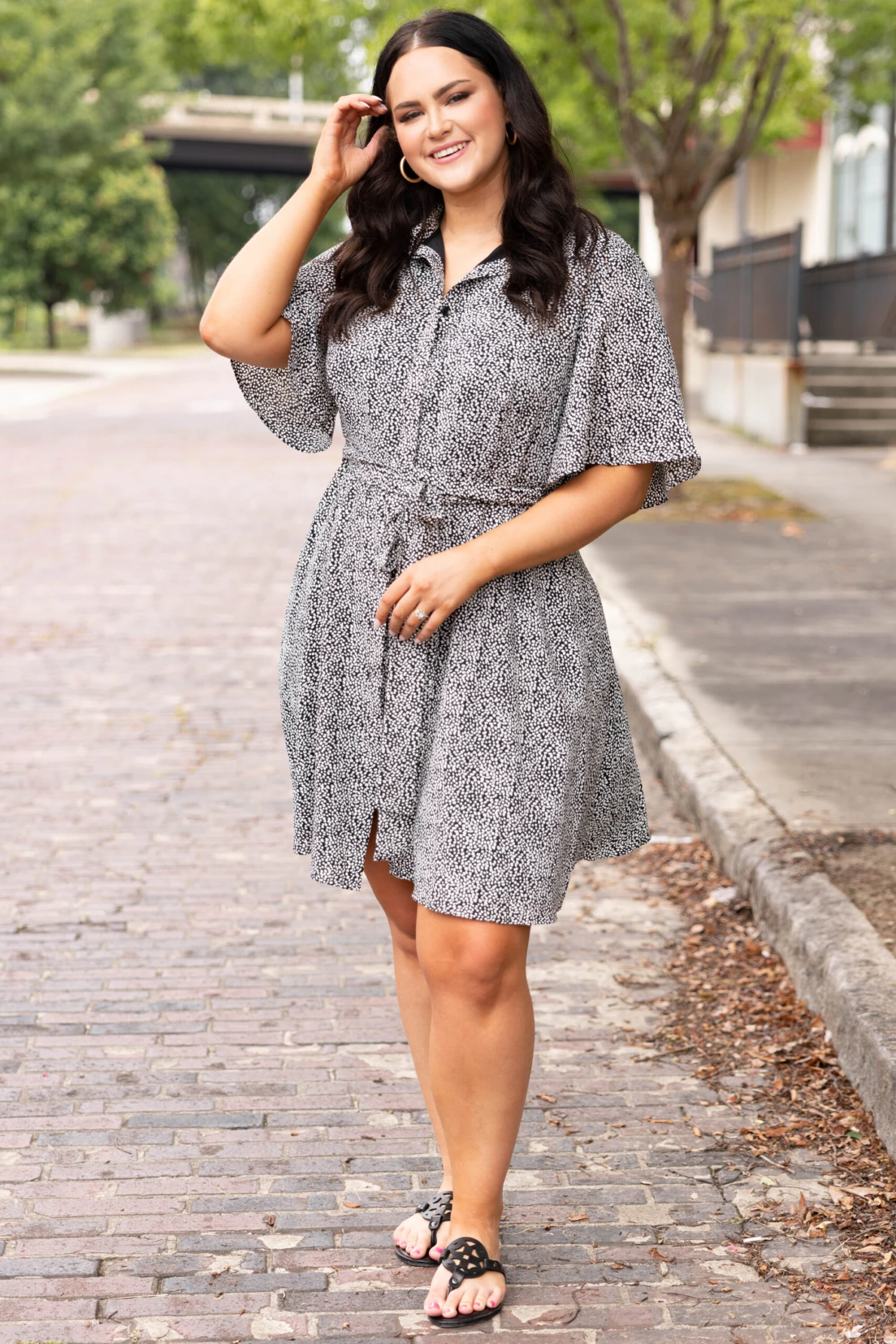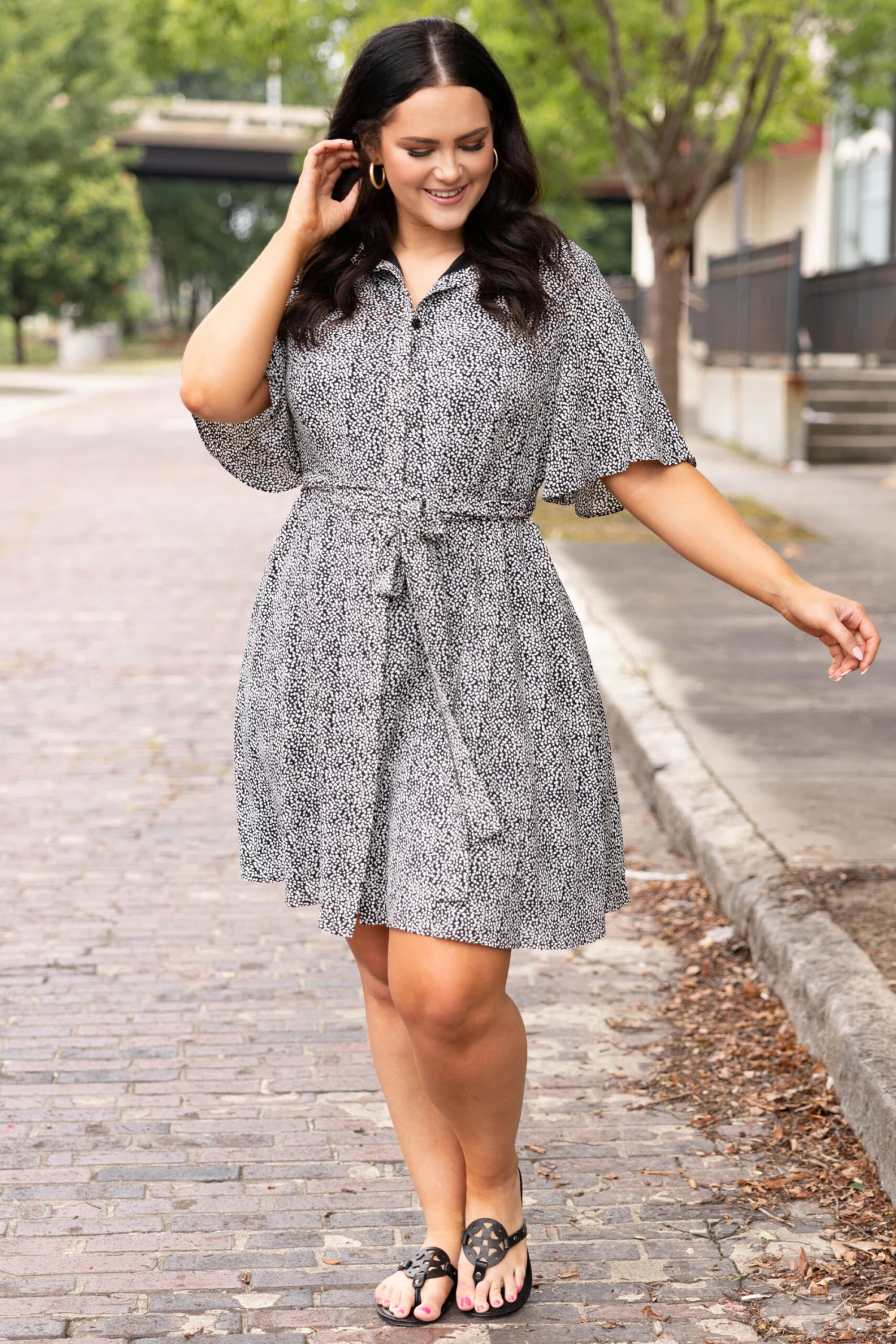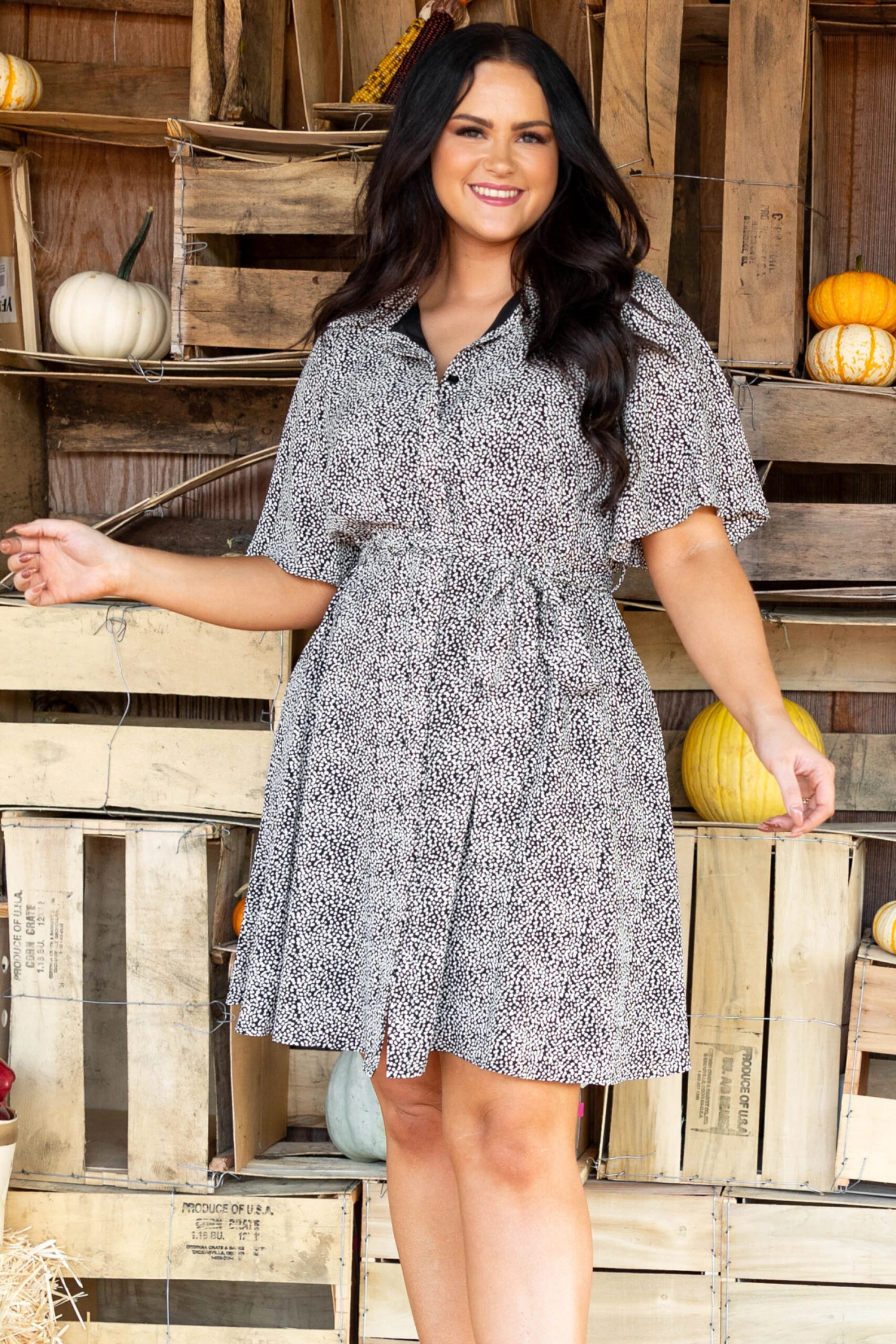 You’ll want this beauty for your busy days ahead! This dress has a neutral color and a trendy leopard pattern that is perfect for the season! The flowy fit and lovely tie is great to show off your figure! Style this dress with booties or sandals for a flirty, chic look!