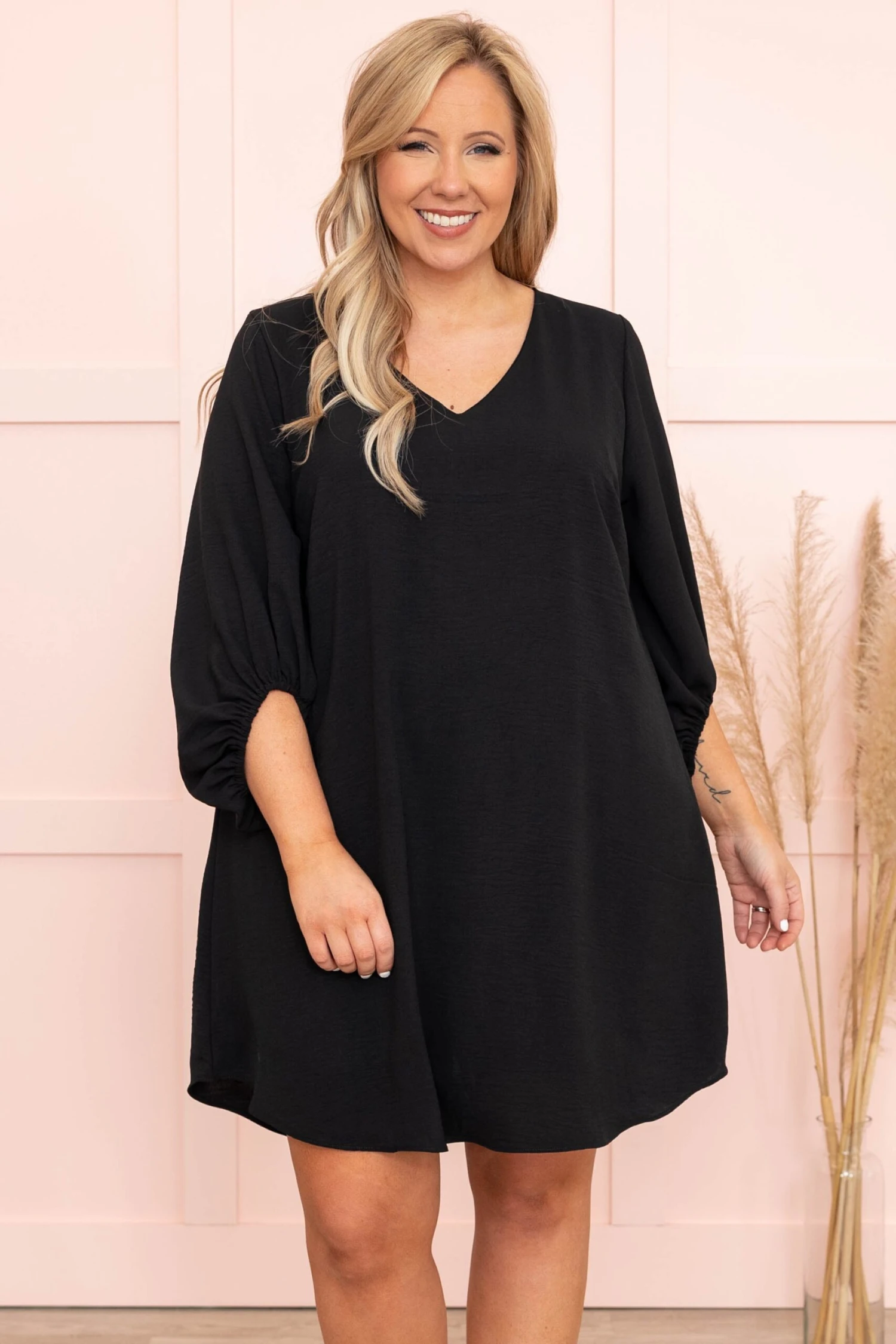 We have been waiting for a dress like this! The solid black color will always be in style and the bell sleeves give us retro vibes! We love this LBD styled with some gold accessories and wedges for the perfect look!