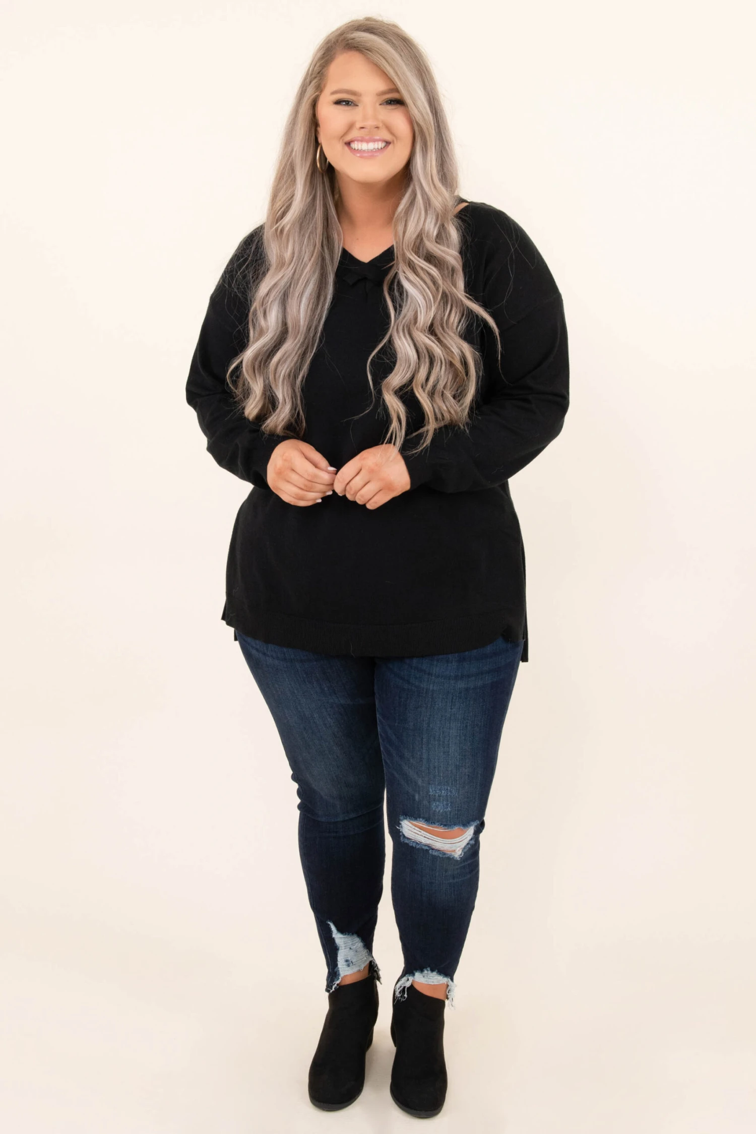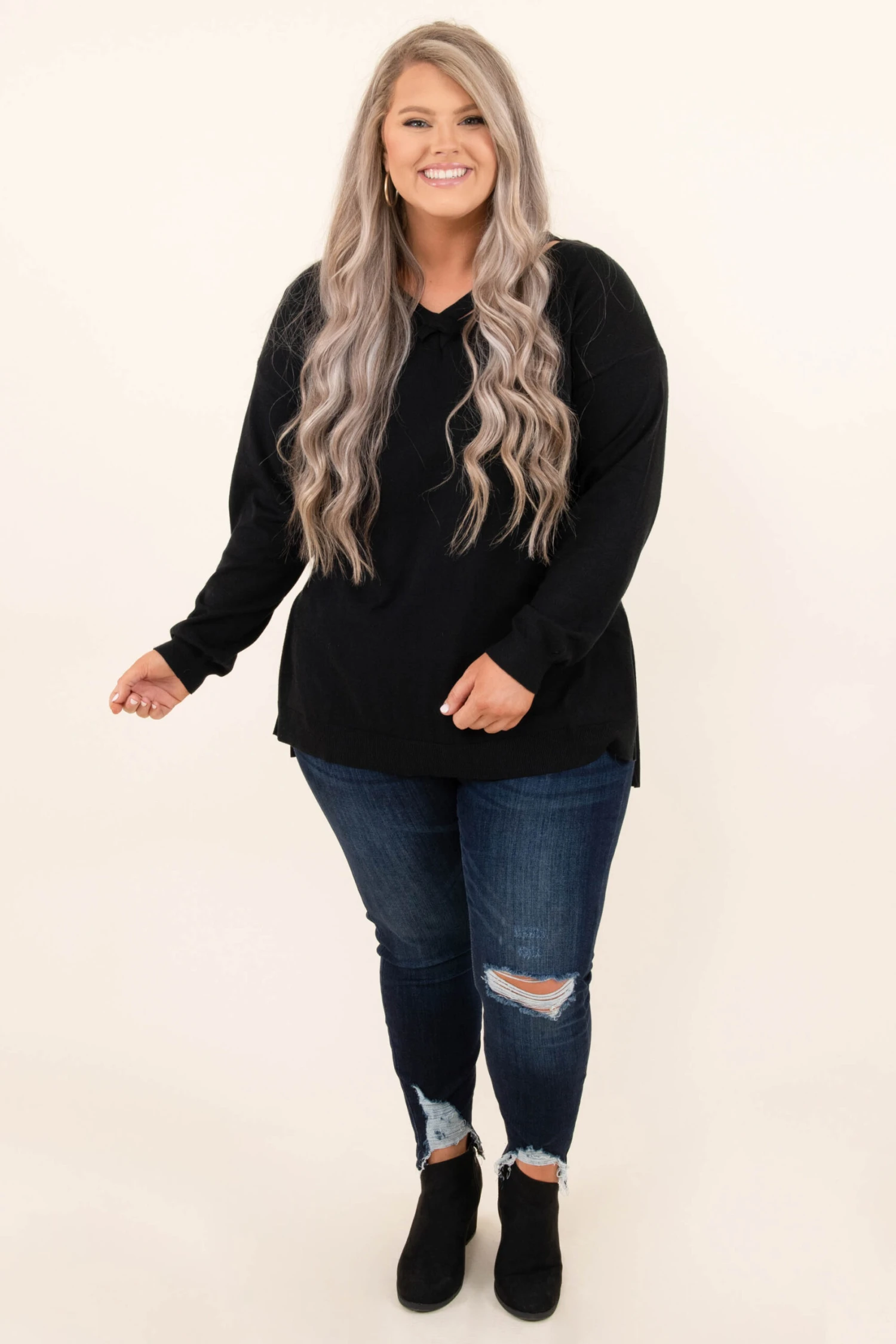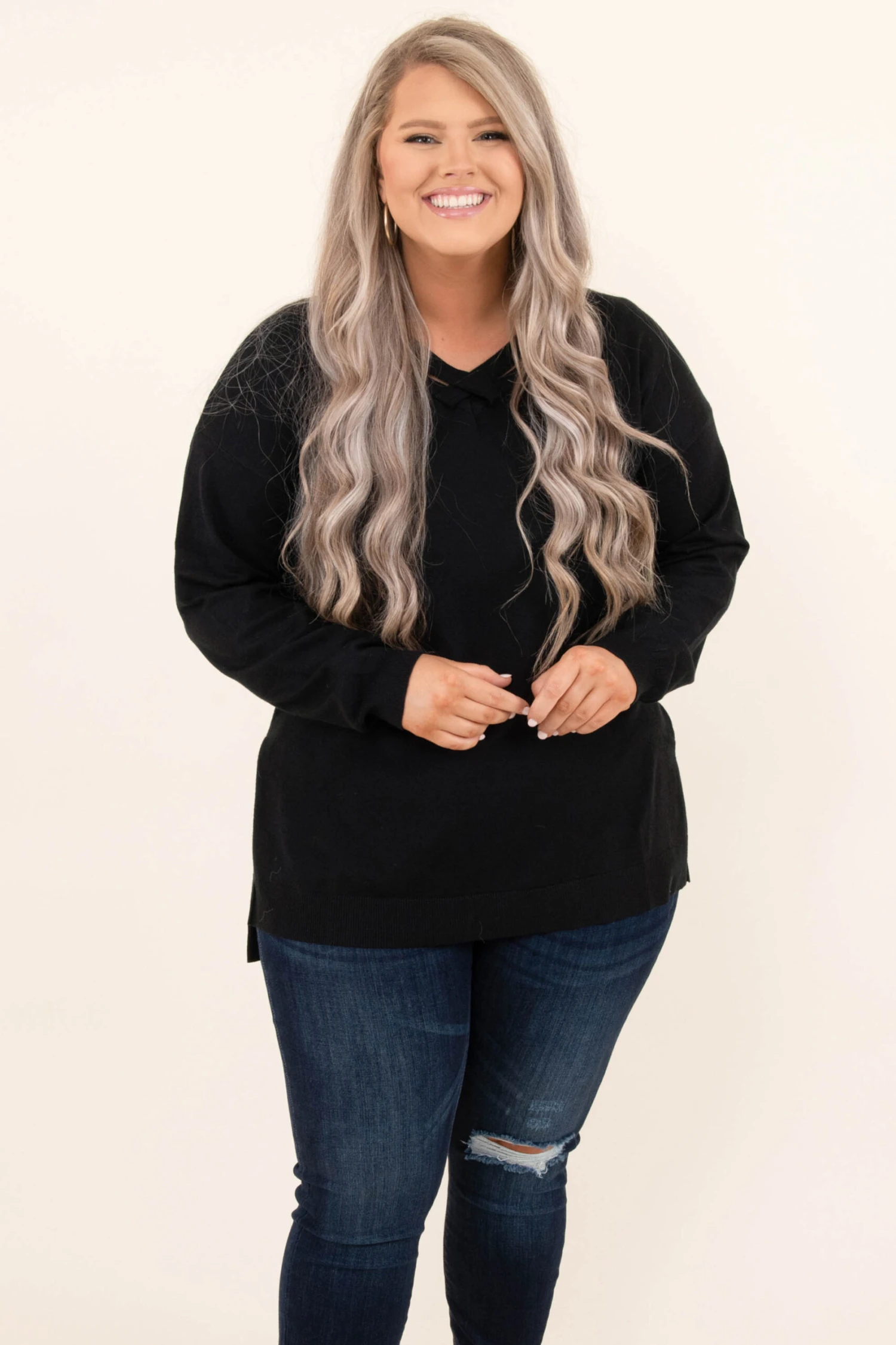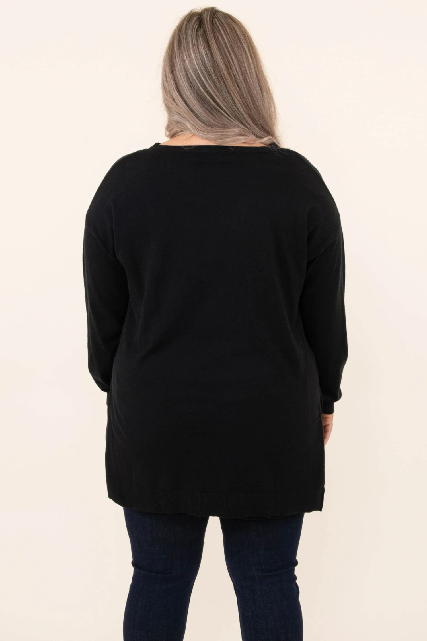 Don’t wait to get this sweater for fall! This sweater has a chic black color you can dress up or down and style with everything in your closet! It’s comfortable for all day wear, has a figure-flattering fit, and can be layered with your favorite outerwear! Simply style this sweater with your favorite skinnies and boots for an effortlessly chic look!Â