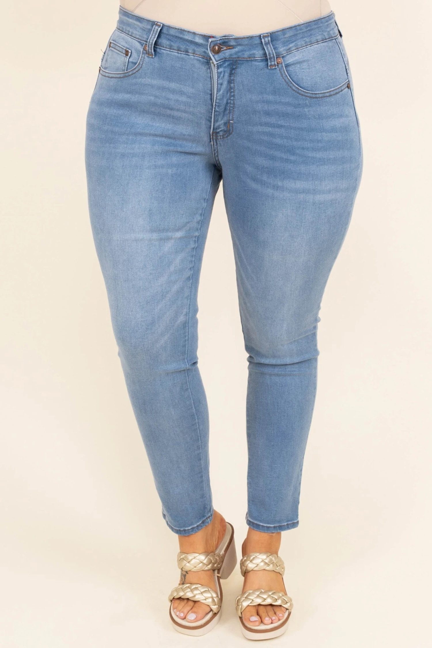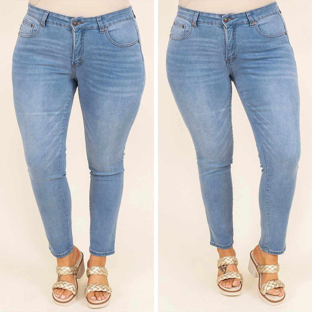 Get out and take a walk in these gorgeous jeans! They have a trendy light wash that is perfect to pair with all of your faves! The stretchy, figure flattering fit is great for all day wear! Style these jeans with a fun sweater and cute accessories for a sassy chic look!