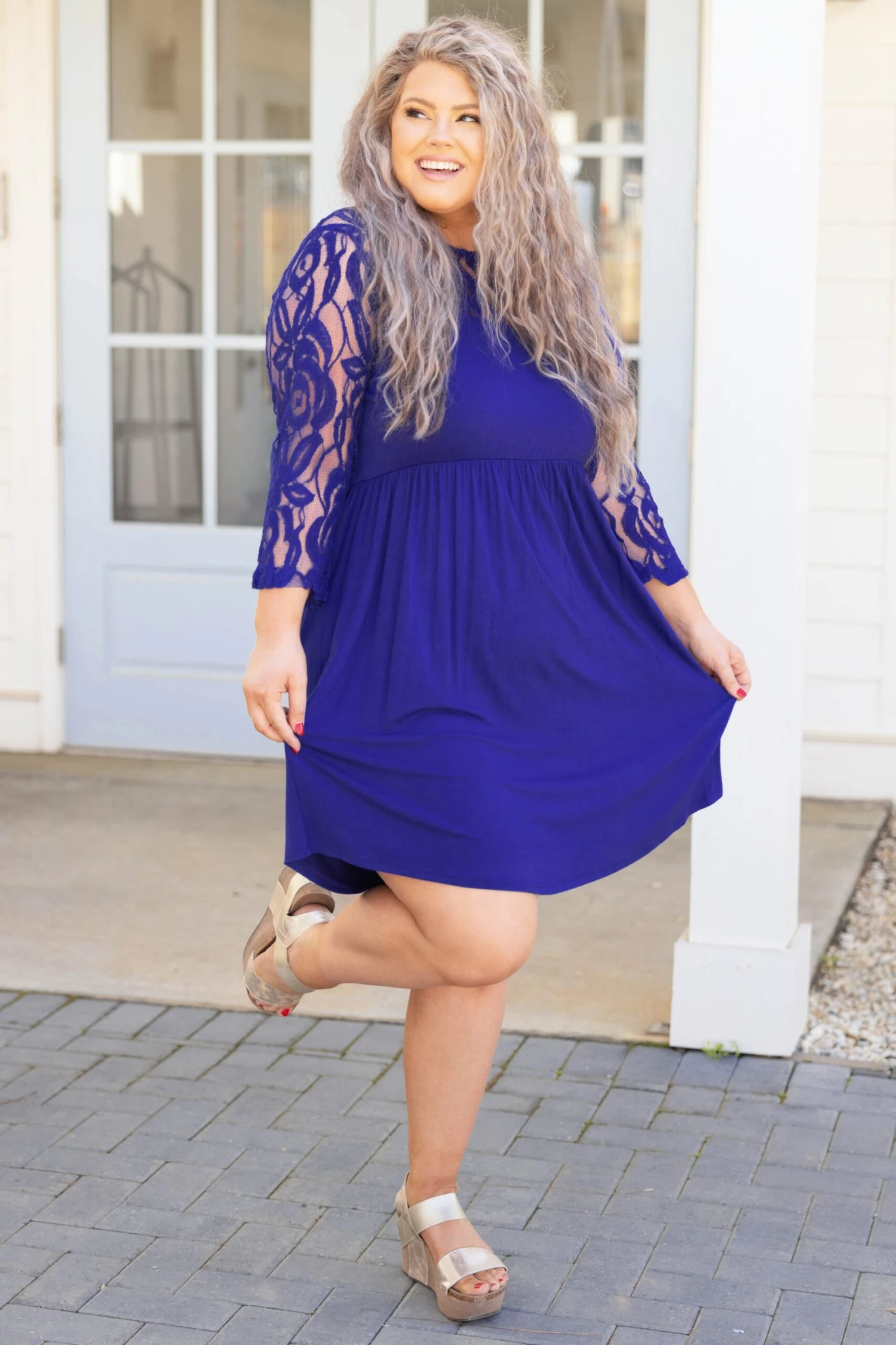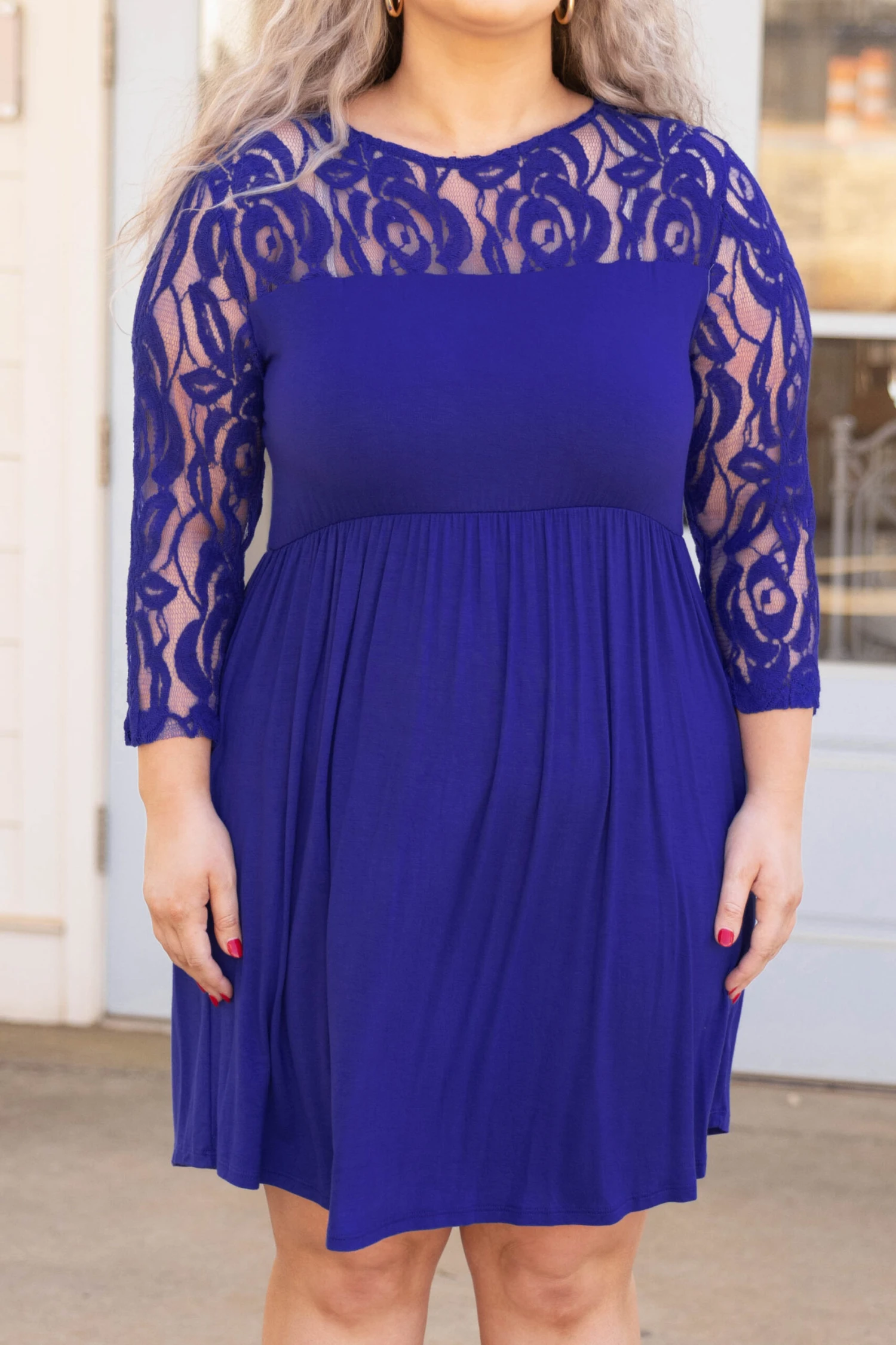 Make great memories in this dress! The royal blue color is so gorgeous, and the lace detail at the shoulder and hem adds a feminine, romantic touch that’s super stylish right now! Plus, the breezy babydoll fit just secures the fact that this beauty was made for summer! Style this beauty with some fun wedges or sandals for an ultra-trendy summer look!Â