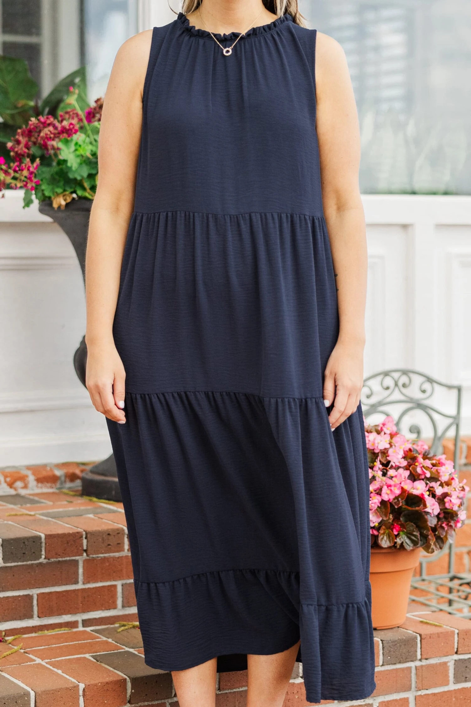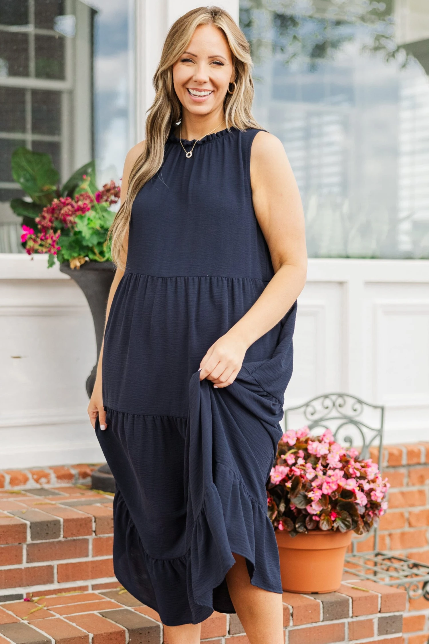 Get ready to slay the weekend in our Weekend Wardrobe Maxi Dress! Made from airflow material, this dress keeps you cool and comfortable while you turn heads in the lovely navy color! The ruffle detailing along the neckline adds a touch of feminine flair, and the flowy fit and functional pockets make it both stylish and functional!