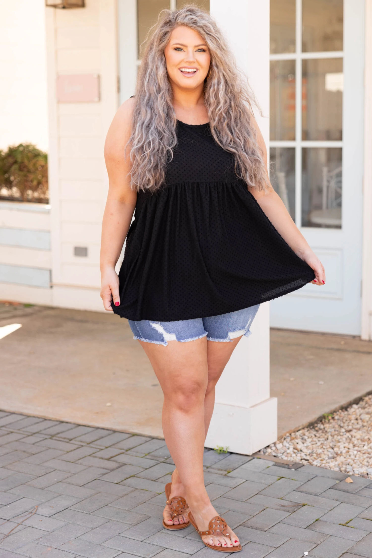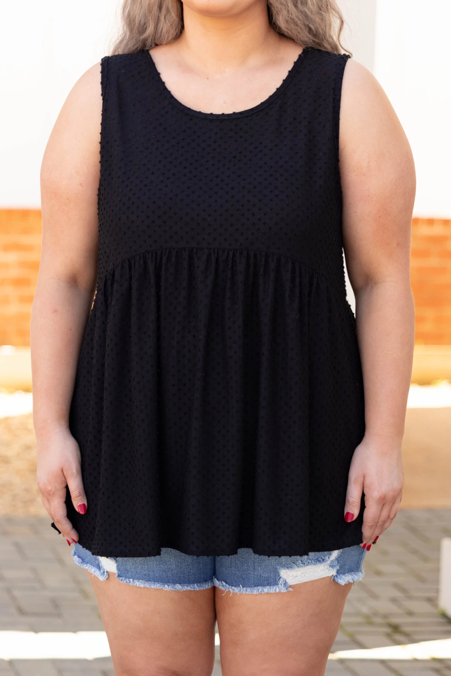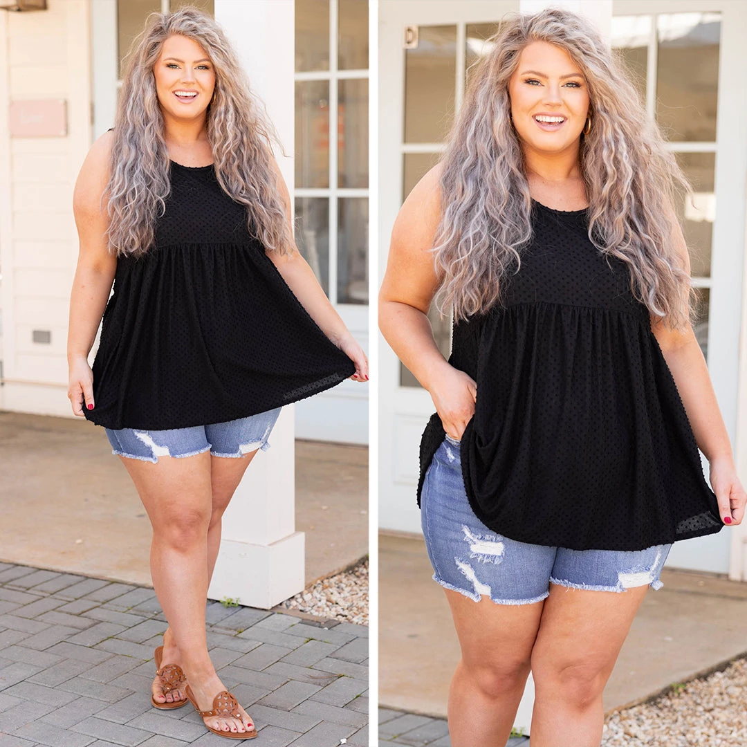 Introducing your new favorite top: The Weekender! Made for wearing beyond the weekend, this tank has a figure-flattering baby-doll fit, a soft fabric to keep you comfortable, and a solid color with a trendy French raised dot print easy to pair with everything in your wardrobe! Dress this top up or down and wear it all season long! Pair it with your favorite shoes and accessories for an effortlessly beautiful look you can own in every color!Â