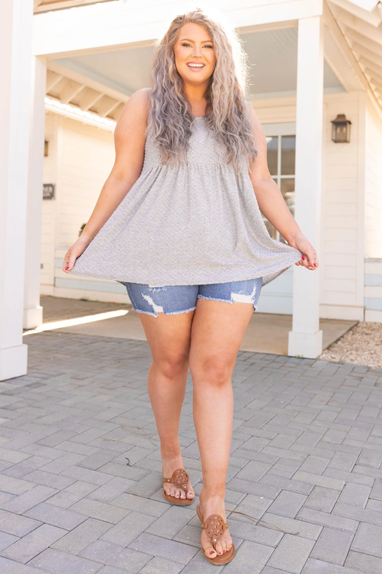 Introducing your new favorite top: The Weekender! Made for wearing beyond the weekend, this tank has a figure-flattering baby-doll fit, a soft fabric to keep you comfortable, and a solid color with a trendy french raised dot print easy to pair with everything in your wardrobe! Dress this top up or down and wear it all season long! Pair it with your favorite shoes and accessories for an effortlessly beautiful look you can own in every color!Â