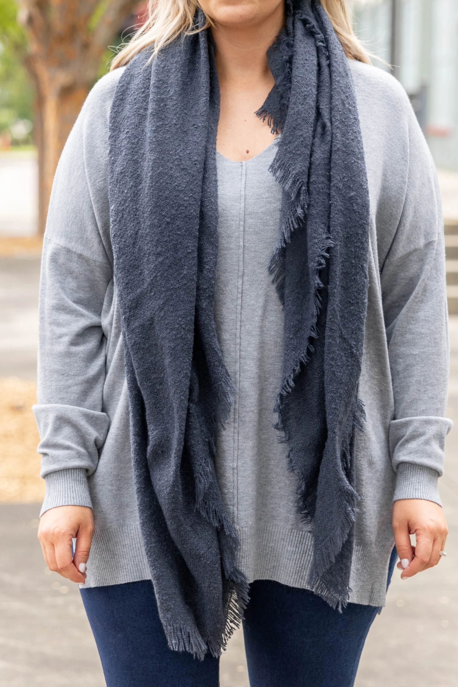 We are well versed when it comes to cute accessories! This scarf has a lovely navy color and a trendy frayed look that is SO sweet! Dress this scarf up with a flirty dress and heels or keep it casual with a cute top and skinnies! Simply style this scarf all your favorite outfits for a casual, cozy look!
