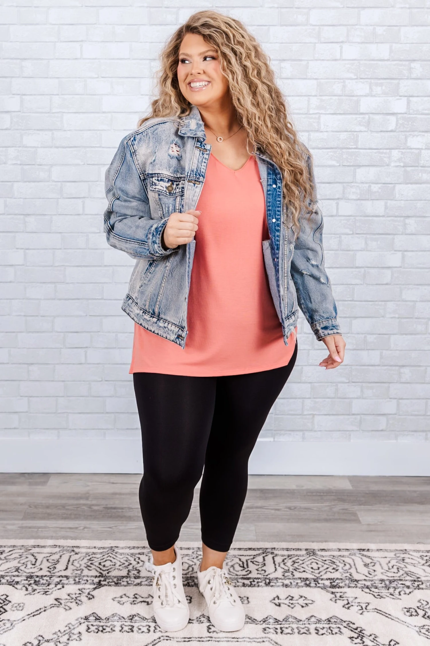 Welcome this tank into your wardrobe with open arms! It offers both comfort and style and will become a closet staple! Its deep coral color allows for easy pairing with skinnies or leggings, making it the perfect layering piece for any outfit! Stay comfortable and fashionable with this versatile tank!