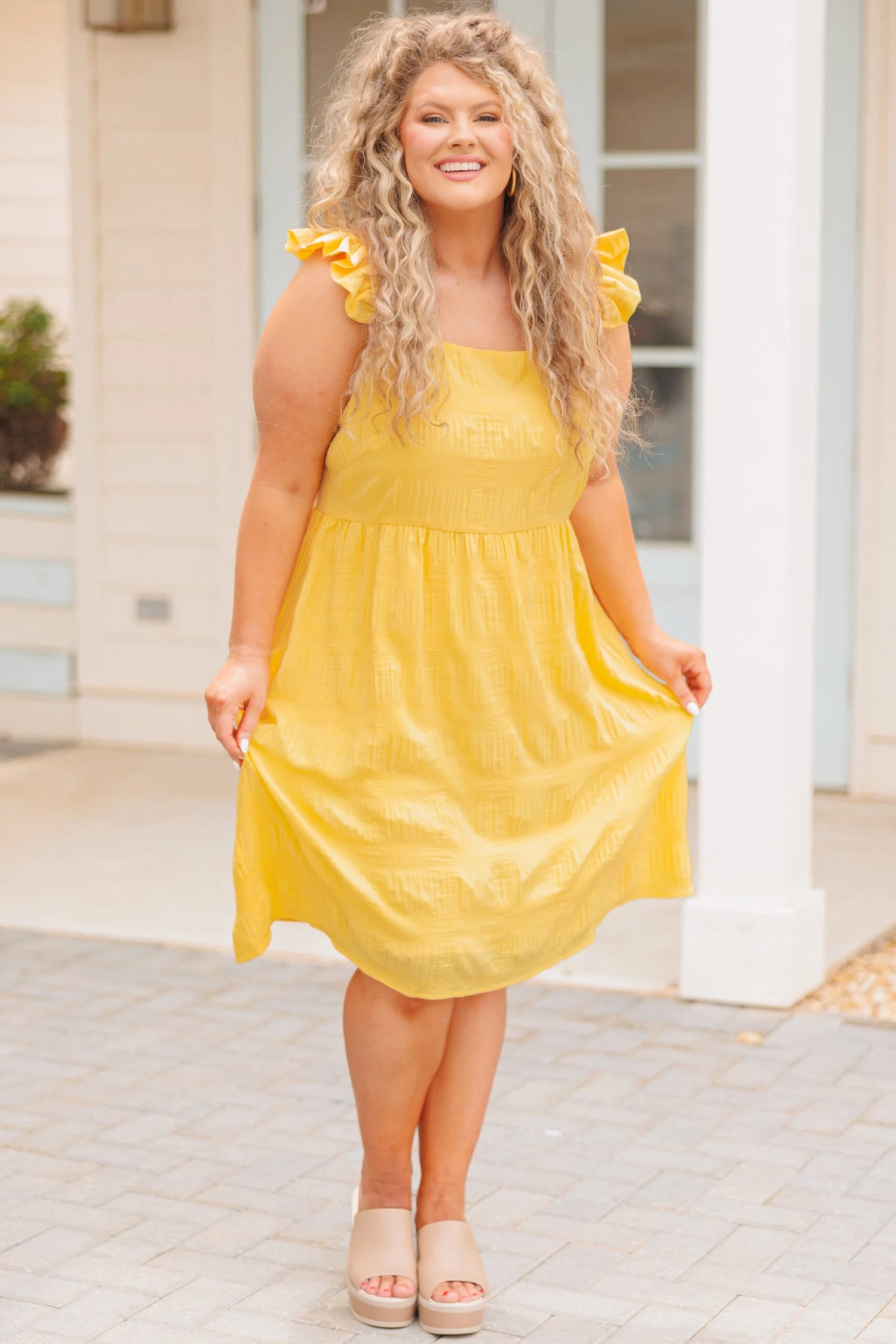 We are in love with this dress! It features flutter sleeves and a flowy fit for a feminine, sassy silhouette! This timeless dress is crafted from beautiful materials, providing you with a look that is sure to turn heads!