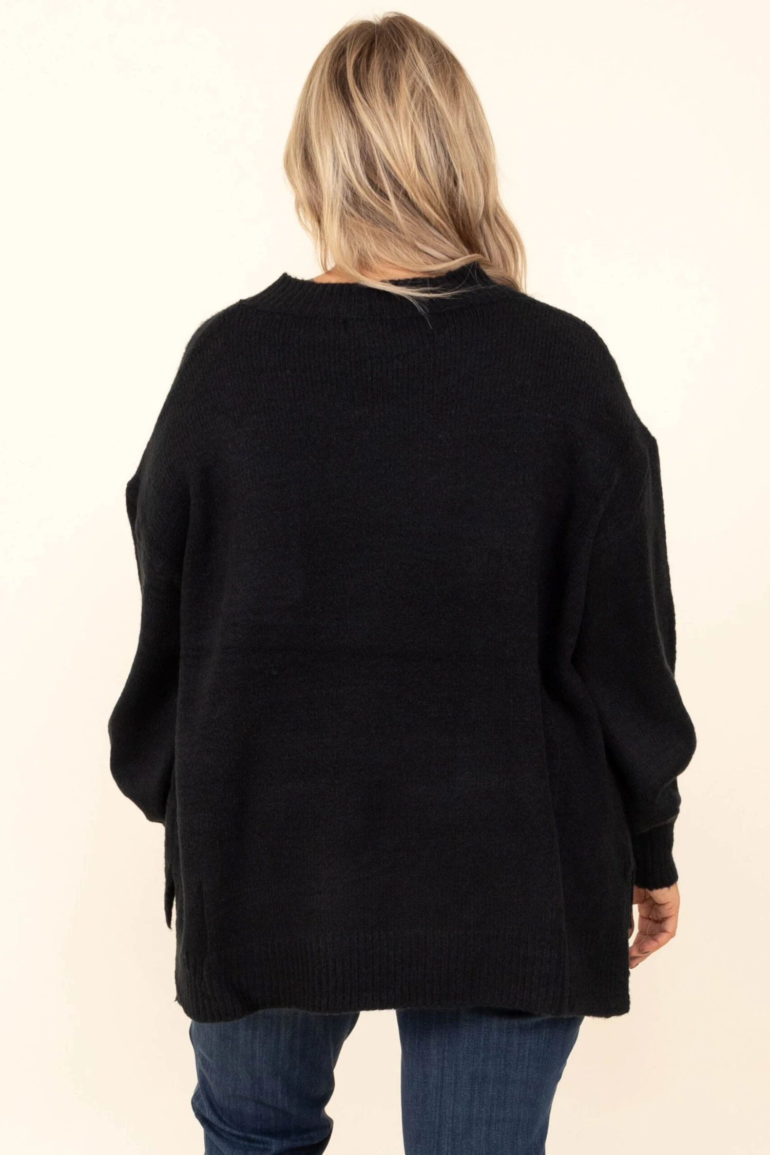 This top can be yours in a heartbeat! Just add it to your cart to get started! This top has a solid black color you can style for every occasion! It’s comfortable for all-day wear, has an oversized fit, and features the comfiest sweater material perfect for the season! Pair this sweater with skinnies and sneakers for your next day out!Â